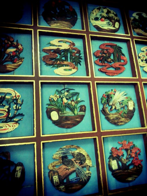 お目当ては天井の木彫り!